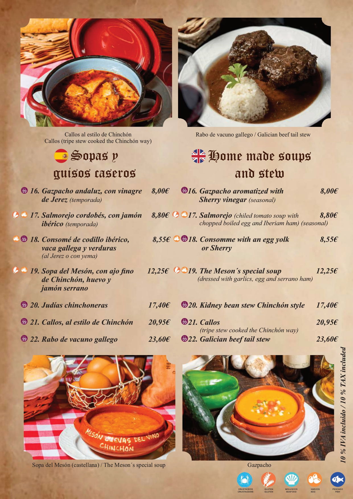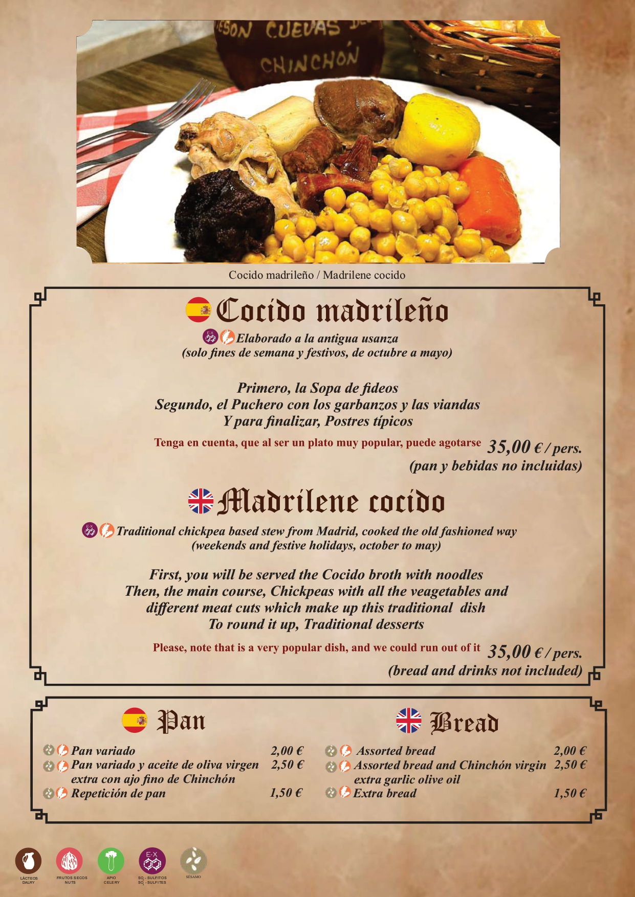 Mención aparte merece nuestro menú «Cocido madrileño». Algunos dicen que el mejor de España.